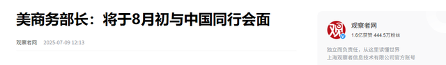 观察者网 美商务部长:将于8月初与中国同行会面